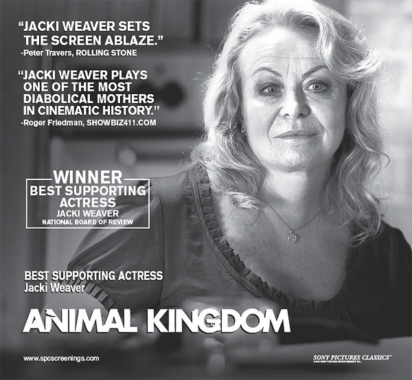 Seguimos con la promoción rumbo a los Oscars... Esta vez nuevos carteles para Barney's Version, Blue Valentine, Biutiful, Another Year y Cairo Time. Sumándose a ellos por primera vez un poster de Animal Kingdom, promocionando a una de las favoritas en la categoría de Mejor Actriz de Reparto: Jacki Weaver...
